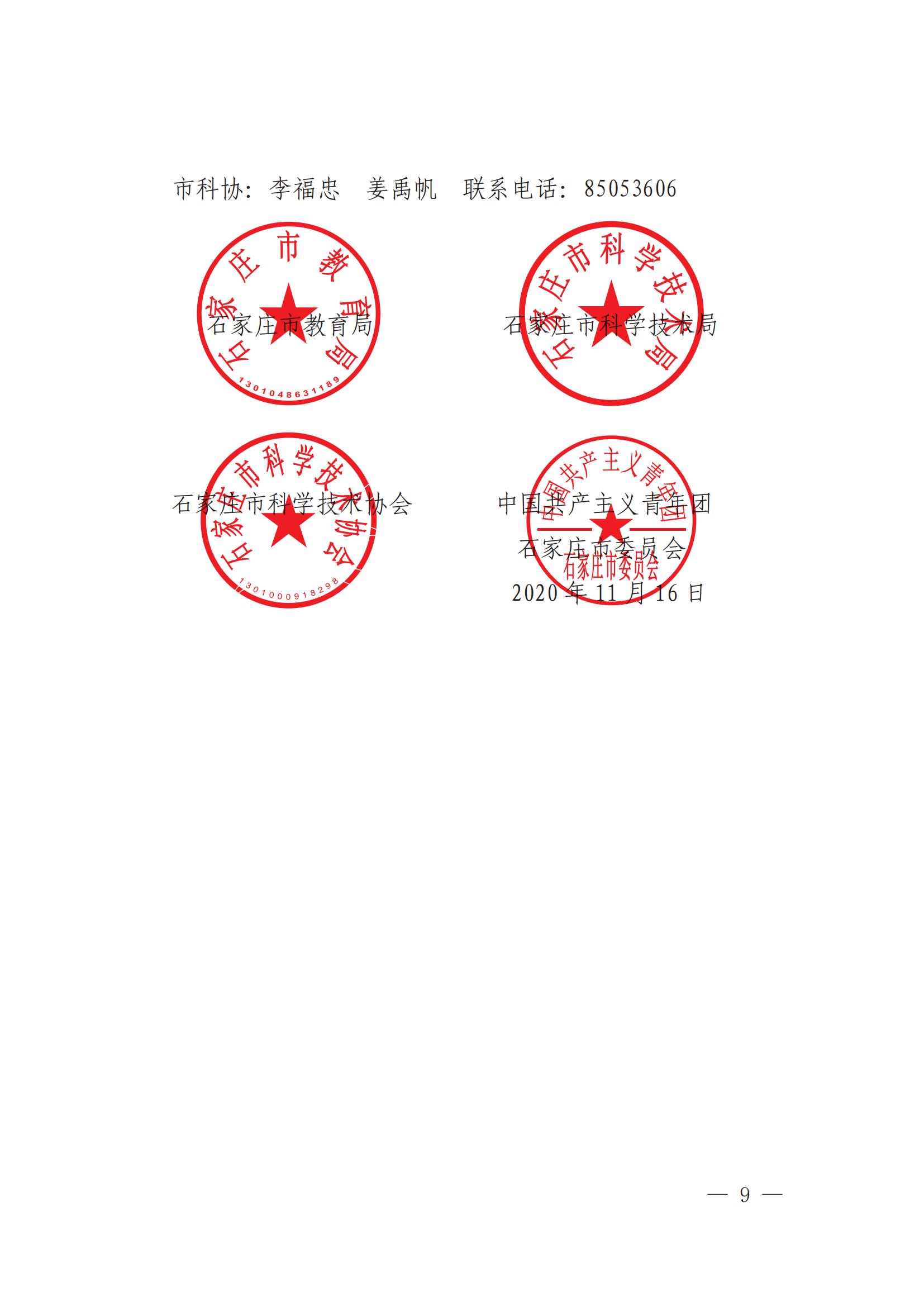 石家庄市教育局等四部门关于举办第二十二届石家庄市青少年科技创新大赛的通知