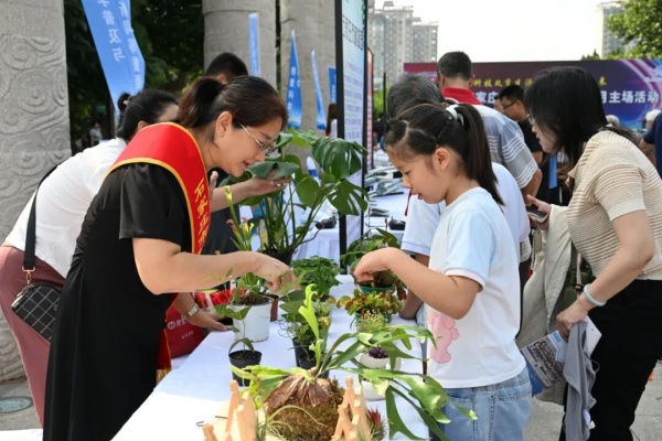 在游戏互动区,市级科普教育基地联盟社区组织了一场垃圾分类闯关游戏,通过“玩中学、学中传”的形式,让市民在闯关游戏中掌握垃圾分类知识。