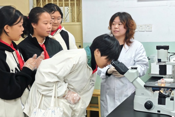 河北省预防兽医学重点实验室则为同学们打开了一扇通往微观世界的大门。实验室师生指导现场学生观察不同线虫的形态结构、菌落的生长特征、电子显微镜下细胞的微观形态,带领大家一同感受实验室浓厚的科研氛围,激发了同学们对医学科研实验的兴趣。