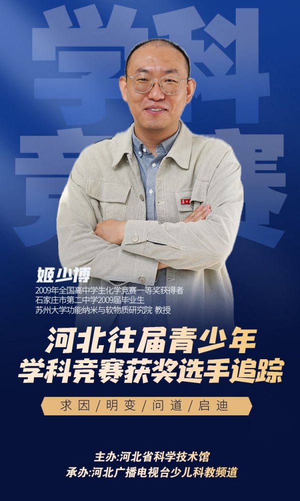 姬少博,2009年全国高中生化学奥林匹克竞赛一等奖,清华大学化学系博士,南洋理工大学博士后,现为苏州大学功能纳米与软物质研究院教授。