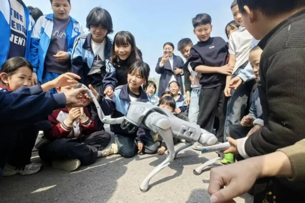 志愿者还为师生们带来了精彩纷呈的机器狗表演。科技狗灵活完成行走、转向、舞蹈、翻滚等高难度动作,精准的指令响应、流畅的肢体表现,让现场同学们惊叹不已,阵阵欢呼与掌声此起彼伏。